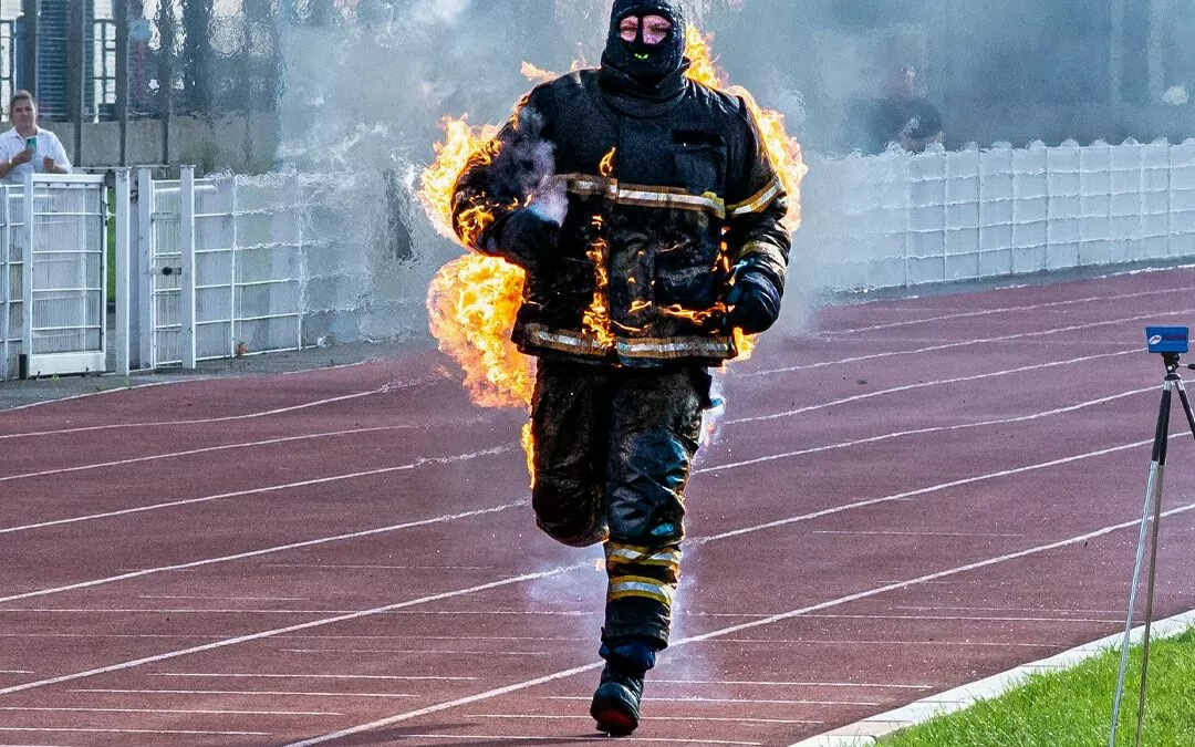 Francuski strażak Jonathan Vero pokonał 272,25 metra mając na sobie palący się kombinezon ochronny. Przy okazji ustanowił dwa rekordy Guinnessa.